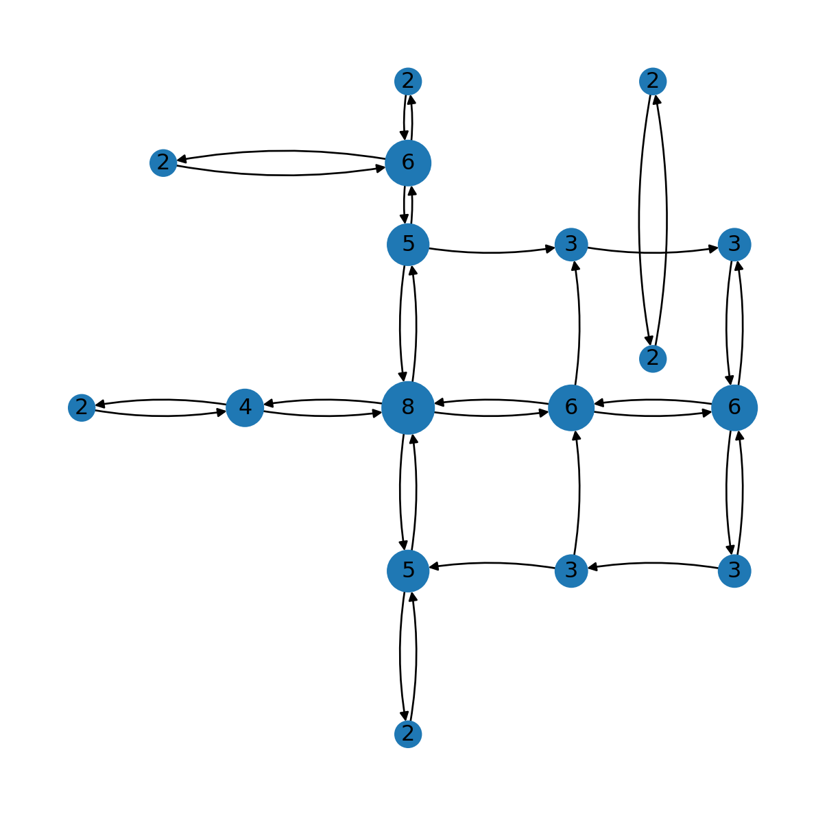 For example, here are the node degrees in the directed road network G: