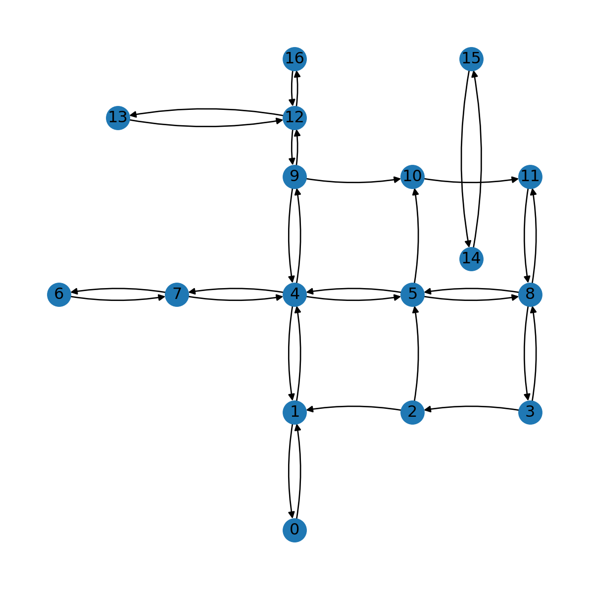An existing network object can be transformed to a directed network using the .to_directed method. Note that the network type changes from Graph to DiGraph (Table 5.1):