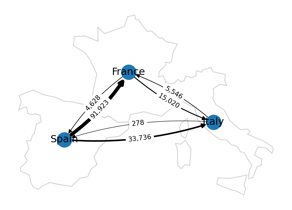 ('France', 'Italy'): {'value': 15020},