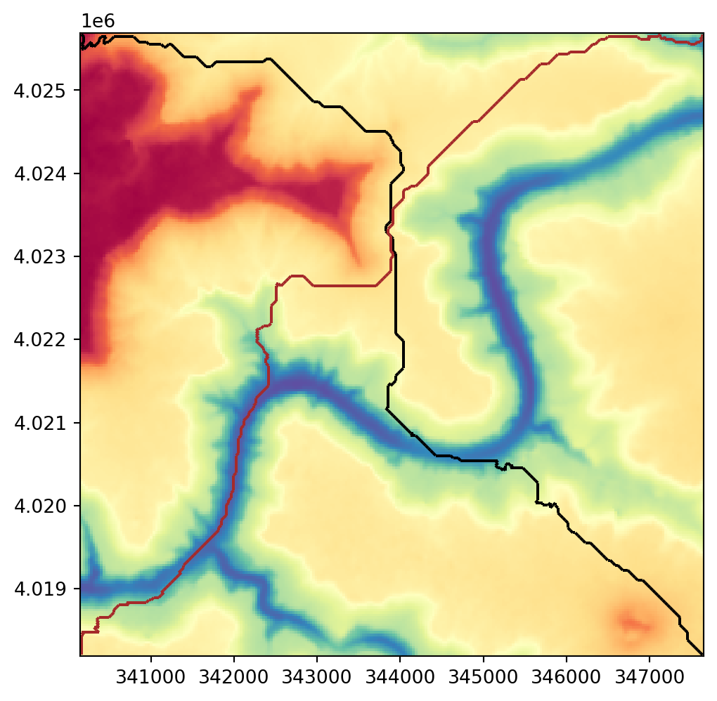 lines.plot(ax=base, color='black', linewidth=1, zorder=1)
