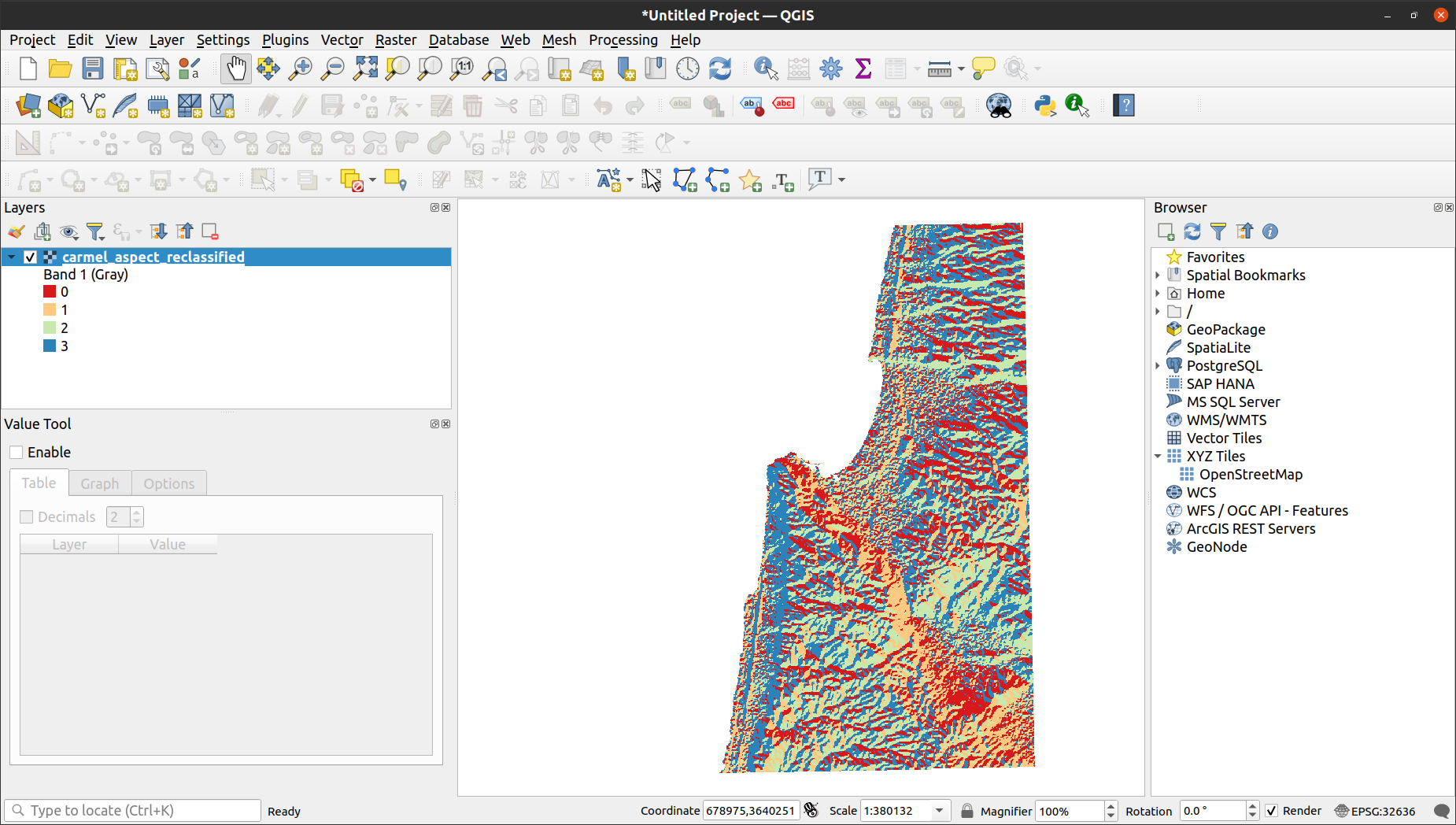 Fig. 64 Reclassified aspect image displayed in QGIS#